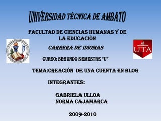 Este documento presenta los objetivos y resumen de un proyecto para crear una cuenta en Google y un blog. Los objetivos son aprender a crear una página en Google, obtener conocimiento sobre blogs, y adquirir habilidades para crear su propio blog. El resumen explica que un blog es un sitio web actualizado periódicamente que presenta artículos en orden cronológico del más reciente al más antiguo, donde el autor controla el contenido. El documento luego explica los pasos para crear una cuenta en Google y un blog en la plataforma de