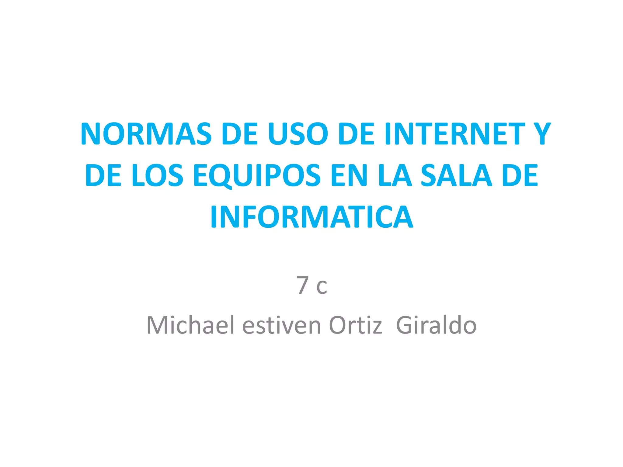 El documento establece 10 normas para el uso de internet y los equipos en la sala de informática de la escuela. Las normas incluyen que el área de sistemas no es responsable de la información guardada en los equipos, que solo se puede ingresar con el perfil de Estudiante o Profesor, y que se debe apagar los equipos y reportar cualquier daño o problema al finalizar la clase.