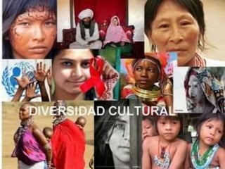 El documento habla sobre la diversidad cultural en Ecuador. Explica que la diversidad cultural se refiere a la variedad de culturas que existen en un país o región, y que en Ecuador existen diferentes grupos étnicos como los otavaleños, quienes mantienen tradiciones como la confección de tejidos y el uso de vestimenta tradicional. También describe algunas características de la diversidad cultural como las costumbres, celebraciones, leyendas y tradiciones de los pueblos. Finalmente, clasifica los diferentes elementos de una cultura y m