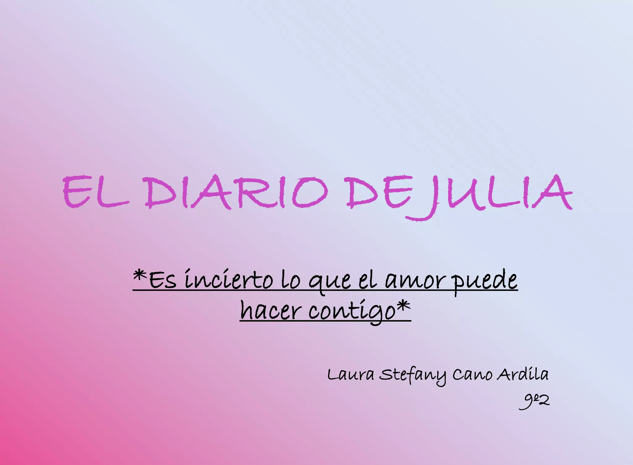 El diario narra la historia de amor de Julia con un chico llamado Frank. Al principio todo va bien, pero luego Frank empieza a comportarse de manera extraña y distante, lo que genera dudas en Julia. Más tarde, Julia descubre que Frank la engaña con su ex amiga Andrea. Enfrenta a la pareja cuando los ve juntos, expresando su decepción y enojo por la traición.