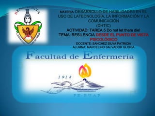 La resiliencia se refiere a la capacidad de las personas para enfrentar y superar situaciones adversas y generar aprendizaje. Factores que contribuyen a la resiliencia incluyen el apoyo emocional, permitirse experimentar emociones intensas sin temerlas, afrontar problemas en lugar de huir de ellos, tomar tiempo para descansar y recuperarse, y confiar en uno mismo y en los demás.
