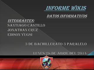 Este documento describe los pasos para crear una cuenta en una plataforma wiki. Los requisitos para las cuentas de los estudiantes incluyen que el nombre de usuario contenga el nombre y apellido completo del estudiante y las iniciales de la universidad, si es necesario. También se requiere que los estudiantes usen su correo electrónico principal y suban una foto de perfil para que el profesor y compañeros puedan reconocerlos. Además, deben configurar su zona horaria a Quito para evitar problemas técnicos.