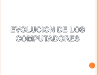 El documento describe las cinco generaciones de computadoras, comenzando con las primeras computadoras que usaban bulbos y tarjetas perforadas, luego las computadoras más pequeñas y rápidas de la segunda generación que usaban transistores, seguidas por las aún más pequeñas de la tercera generación que incorporaron circuitos integrados, y luego las computadoras más pequeñas de la cuarta generación que usaron microprocesadores y memorias electrónicas, concluyendo con el objetivo de la quinta generación de desarrollar computadoras con inteligencia artificial