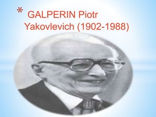 - Piotr Yakovlevich Galperin fue un psicólogo ruso experto en teoría y metodología de la psicología, psicología evolutiva y pedagógica.