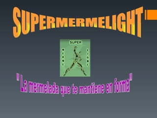 El documento presenta un resumen del proyecto de creación de una mermelada dietética llamada "Supermermelight" elaborada a base de cáscara de toronja. El proyecto fue desarrollado por un grupo de 6 socias y describe el nombre, logotipo, envase, producción, marketing y viabilidad del negocio.