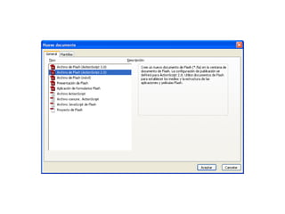 El documento describe los pasos para crear un botón interactivo en Flash que cambia su aspecto al pasar el cursor por encima, hacer clic y soltar clic. También explica cómo crear un rectángulo en una capa y convertirlo en texto en otro fotograma para realizar una animación de morphing.