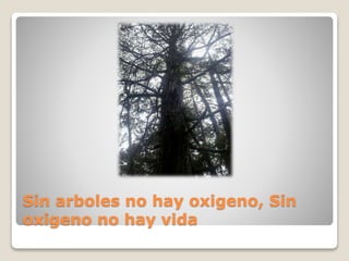 Este documento habla sobre la importancia de la naturaleza y los árboles. Señala que sin árboles no hay oxígeno y sin oxígeno no hay vida. También menciona que la naturaleza hace grandes obras sin esperar nada a cambio y que es triste que algún día la naturaleza deje de existir y solo sea una historia. Además, resalta que a pesar de los esfuerzos humanos, la naturaleza es sabia y el hombre nunca podrá superarla.