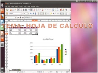 Una hoja de cálculo es un software que organiza datos en filas y columnas para facilitar análisis como costos, ingresos y más información, lo que permite a gerentes y empresarios examinarla y tomar decisiones. Cada celda se identifica por su fila y columna y permite introducir datos o realizar cálculos.