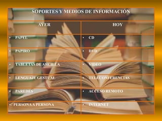 El documento proporciona una historia de la bibliotecología en Colombia. Explica que la bibliotecología emergió como un campo de conocimiento autónomo en el siglo XIX y ha evolucionado para adaptarse a los cambios tecnológicos. Describe el desarrollo de bibliotecas especializadas y el surgimiento de la documentación. También cubre el surgimiento de la ciencia de la información y su relación con la bibliotecología. Incluye enlaces a artículos y videos que ilustran los retos actuales de los bibliotecólogos