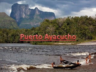 El documento describe varias atracciones turísticas en Puerto Ayacucho, Venezuela, incluyendo el Museo Etnológico que muestra las culturas indígenas de hace más de 150 años, un tobogán acuático en la selva amazónica para disfrutar en familia, y paisajes del río más reconocido del país. También recomienda visitar una catedral única con una imagen tridimensional de Jesús en el techo y una plaza de indios con artesanías de alta calidad.