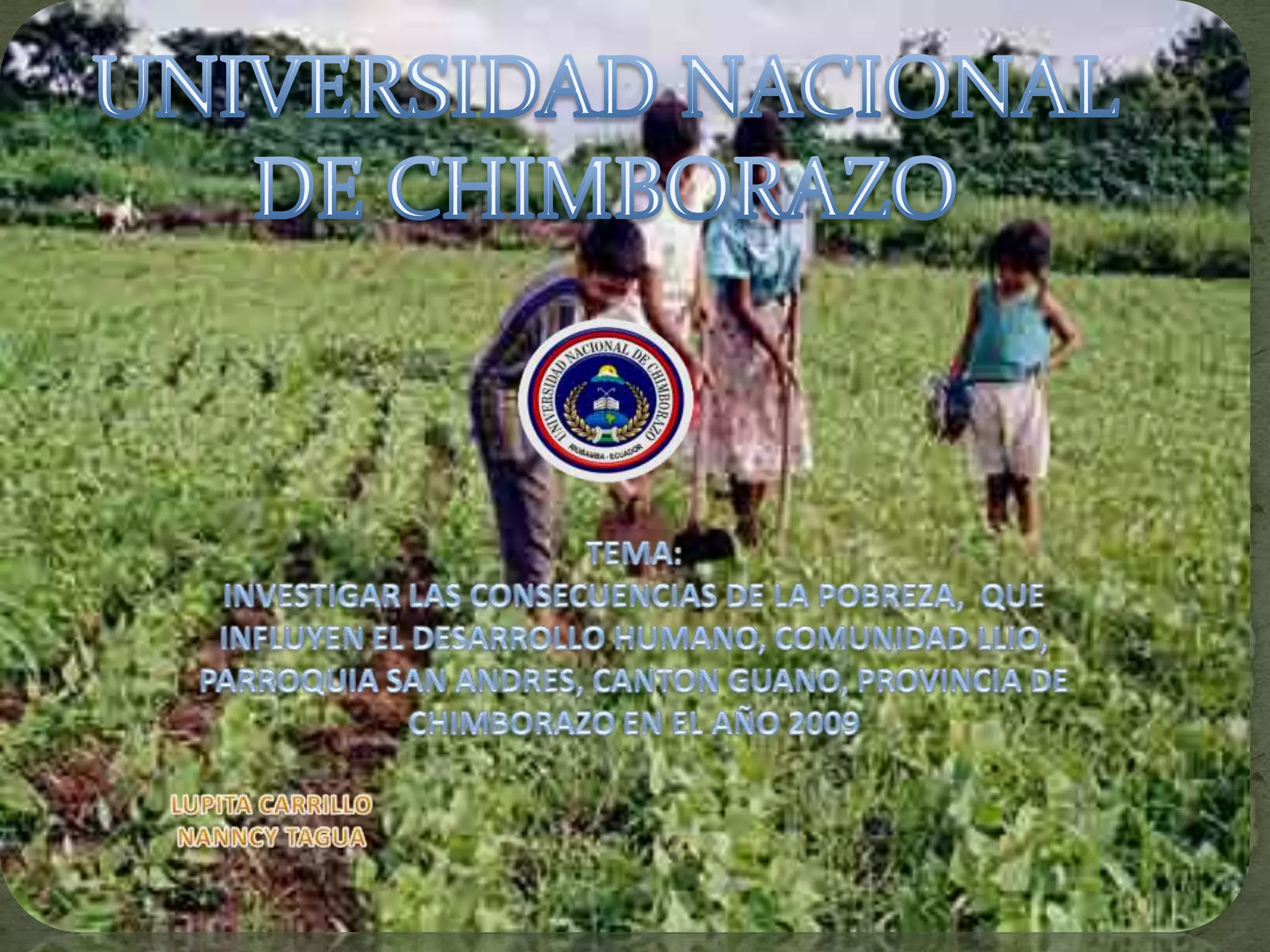 Este documento describe una investigación sobre las consecuencias de la pobreza que influyen en el desarrollo humano de la comunidad de Llio en Ecuador. Analiza factores como la falta de educación, salud e ingresos que contribuyen a la pobreza. También examina consecuencias como la prostitución y el abuso infantil. Finalmente, concluye que la pobreza ha influido negativamente en el desarrollo de esta comunidad y recomienda medidas como obtener microcréditos y organizarse para mejorar la producción agrícola y gan
