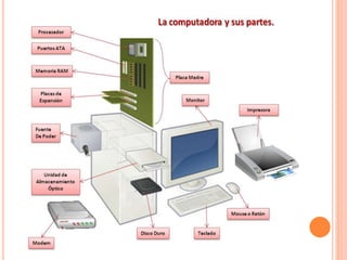 El documento describe el funcionamiento básico de las computadoras y celulares. Explica que las computadoras funcionan mediante la entrada, procesamiento y salida de información, mientras que los celulares se comunican a través de ondas de radiofrecuencia con estaciones base y centrales de telefonía. También recomienda medidas para el uso seguro y saludable de estos dispositivos, como el uso de dispositivos manos libres para celulares y llevar el celular cargado durante viajes.