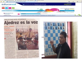 El documento describe el ajedrez escolar como una disciplina que ayuda a desarrollar habilidades mentales y valores a través de un juego de ingenio. Explica que el ajedrez fomenta habilidades como la atención, el análisis y la toma de decisiones, así como valores como la tolerancia y la responsabilidad. También menciona cómo el ajedrez puede desarrollar competencias matemáticas y comunicativas en los estudiantes.