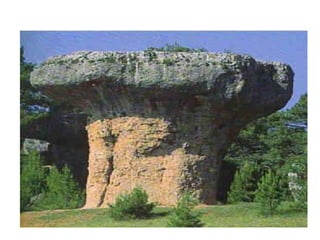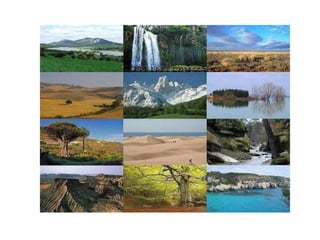 Este documento habla sobre los monumentos naturales y el patrimonio natural. Define los monumentos naturales como formaciones físicas, biológicas o geológicas que son hábitats de especies amenazadas. Explica que el patrimonio natural incluye zonas delimitadas que tienen un valor excepcional por su ciencia, conservación o belleza natural. Además, señala que la principal diferencia entre el patrimonio cultural y natural es que el primero implica la intervención humana para modificar el paisaje.