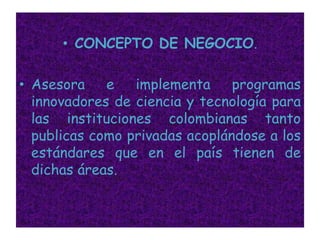 La empresa se dedica a asesorar e implementar programas innovadores de ciencia y tecnología en instituciones colombianas públicas y privadas. Genera ambientes de aprendizaje que cambian el modelo de enseñanza al facilitar la integración de diversas áreas del conocimiento de manera sencilla y divertida para los estudiantes. Se diseñan y desarrollan recursos de aprendizaje como proyectos de robótica, siendo la primera empresa en ofrecer todos los recursos necesarios para la implementación de estos ambientes de aprendizaje.