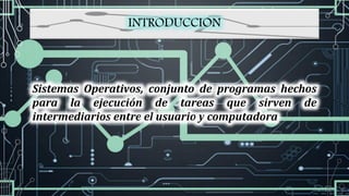 Este documento proporciona información sobre varios sistemas operativos populares como MS-DOS, Unix y Linux. Describe sus características, requisitos de hardware y software, procesos de instalación y ventajas y desventajas. Los sistemas operativos discutidos incluyen sus líneas de tiempo y versiones principales a lo largo de la historia.