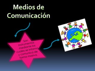 Este documento clasifica los medios de comunicación en digitales e informativos, de entretenimiento y de análisis, y especializados. Los medios de comunicación proporcionan información masiva y permiten que las personas se diviertan, se informen y obtengan conocimiento.