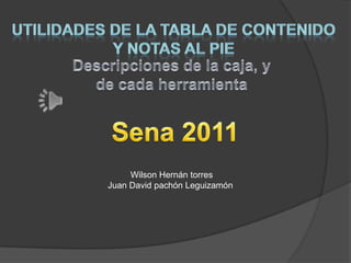Este documento describe cómo crear y actualizar tablas de contenido e insertar notas al pie en Microsoft Word. Explica que las tablas de contenido se pueden generar automáticamente a partir de los estilos de título integrados o personalizados aplicados a los títulos, o bien se pueden agregar elementos de texto específicos. También cubre cómo actualizar una tabla de contenido para reflejar cambios en el documento y eliminar una tabla de contenido existente. Por último, detalla el proceso de inserción de notas al pie mediante la selección de