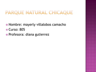 El Parque Natural Chicaque se encuentra en San Antonio de Tequendama, Cundinamarca, a 30 minutos de Bogotá. Con un área de aproximadamente 300 hectáreas, el parque alberga más de 300 especies de aves y 20 de mamíferos. Fue fundado en 1989 para proteger los bosques de niebla que albergan diversas especies de plantas y animales. El parque ofrece senderos y miradores para admirar la naturaleza.