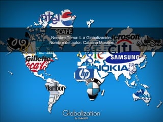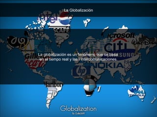 La globalización es un fenómeno basado en el tiempo real y las intercomunicaciones. El documento proporciona enlaces a dos videos de YouTube y dos sitios web sobre la globalización y sus contenidos, escrito por la autora Catalina Morales.