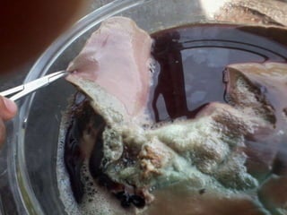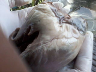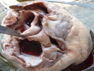 El documento describe cómo el alcohol daña el hígado y el corazón a través de un experimento. El hígado y el corazón sanos se exponen al alcohol durante varios días, observando los cambios. El hígado se vuelve más blanco, pegajoso y desarrolla manchas, espuma y un olor desagradable, mientras que el corazón se vuelve más oscuro, duro y desarrolla manchas negras. Ambos órganos comienzan a desangrarse y "cocinarse", mostrando cómo el