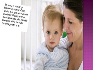 El documento expresa el profundo amor que siente el autor por otra persona, a quien ve como su luz, su cielo y su otra mitad. El autor dice que daría la vida por el amor de esta persona y que ya no hay palabras para explicar lo que siente. Promete amarla y elegirla cada día, ya que ella le da su amor sin medida.