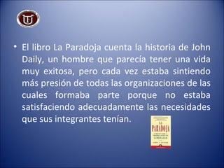 El libro describe las enseñanzas de un monje llamado Hermano Simeón sobre el verdadero significado del liderazgo a través de seis capítulos. Simeón explica que el liderazgo es servir a los demás para satisfacer sus necesidades y ayudarlos a alcanzar su máximo potencial. Un buen líder es honrado, ejemplar y se enfoca en los demás. El libro propone que Jesucristo fue el mayor líder de todos los tiempos por su influencia a través del amor y el servicio, no del poder