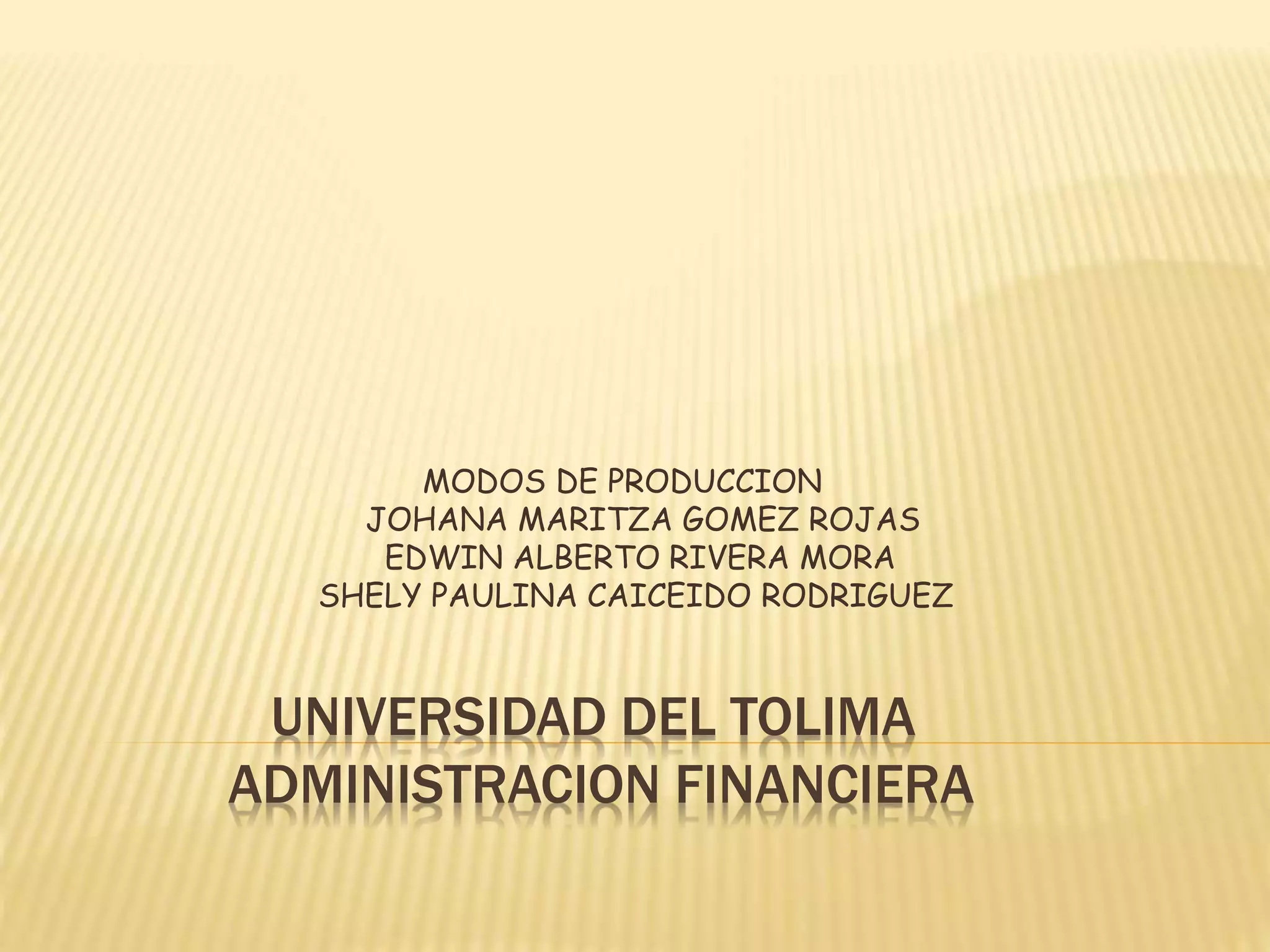 Los modos de producción son formas históricas de organización social y económica de la producción y el intercambio. Johana Maritza Gómez Rojas, Edwin Alberto Rivera Mora y Shely Paulina Caicedo Rodríguez de la Universidad del Tolima estudian los modos de producción y su relación con la administración financiera.