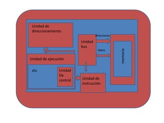 La CPU está compuesta por una unidad de control, una unidad de ejecución y una unidad de direccionamiento que trabajan juntas para leer instrucciones y datos de la memoria, decodificar e interpretar las instrucciones, y ejecutar operaciones aritméticas y lógicas.