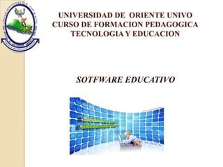 El documento describe el software educativo, definido como material diseñado para ser utilizado en computadoras para procesos de enseñanza y aprendizaje. Explica que existen dos tipos principales de software educativo: algorítmico, que transmite conocimiento a través de actividades secuenciadas, y heurístico, que permite al estudiante descubrir el conocimiento a través de la interacción. También clasifica el software educativo en sistemas tutoriales, de ejercitación, libros electrónicos, simuladores, juegos educativos y sist