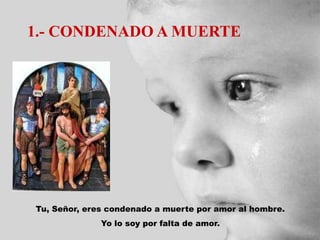 Este documento compara la muerte de Jesús con el aborto de un no nacido, describiendo las similitudes entre las 14 estaciones de la cruz de Jesús y las experiencias de un feto abortado, incluyendo la condena a muerte, la carga de la cruz, las caídas y la crucifixión, para luego concluir pidiendo que se diga sí a la vida.