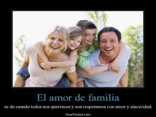El documento habla sobre los diferentes tipos de amor que existen, incluyendo el amor filial, fraternal, romántico, sexual, al prójimo, a los animales y principios abstractos. Describe cada tipo de amor y proporciona ejemplos. También discute el amor en pareja y cómo el amor romántico inicial evoluciona a un amor más maduro con el tiempo.