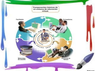 El documento describe los ambientes virtuales de aprendizaje (AVA), definidos como entornos de interacción sincrónica y asincrónica mediados por tecnología que facilitan el aprendizaje. Explica que los AVA incorporan estrategias como el aprendizaje autónomo, cooperativo y basado en proyectos, y generan interacción entre estudiantes, profesores y materiales educativos. También destaca ventajas de los AVA como la flexibilidad, accesibilidad y promoción de la autonomía del estudiante.