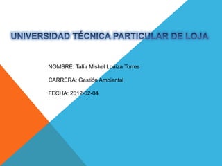 El documento presenta información sobre Talía Mishel Loaiza Torres, quien estudia Gestión Ambiental. También describe los procesadores de textos como herramientas orientadas a la gestión de textos para generar informes, cartas y editar documentos, ya sea imprimiéndolos o transmitiéndolos por redes. Explica que los procesadores de textos son fundamentales en cualquier oficina y que hoy en día una persona sin conocimientos informáticos puede realizar todo el proceso de edición con solo unas horas de entrenamiento.