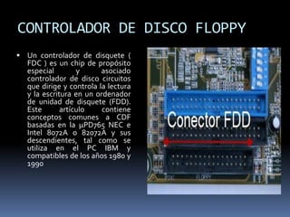 Este documento describe los principales componentes de una tarjeta madre, incluyendo el controlador de disco flexible, el disco duro, los puertos gráficos acelerados, el Video Graphics Array, PCI-Express, la memoria DDR, los módulos DIMM y SIMM, el formato ATX, el BIOS, el puente norte y sur, los jumpers, el conector DVI y el conector Berg. Explica brevemente la función de cada uno de estos componentes clave de una tarjeta madre.
