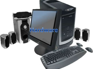 El hardware se refiere a las partes físicas y tangibles de un sistema informático como cables, gabinetes, periféricos y otros componentes eléctricos, electrónicos, electromecánicos y mecánicos. Algunos ejemplos de hardware son el ratón, que se usa para mover un cursor en la pantalla, y la memoria RAM, que almacena temporalmente instrucciones y datos para que los use el procesador.