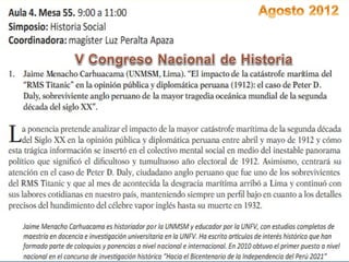 Este documento presenta la biografía y trayectoria académica y profesional de Jaime David Menacho, educador e historiador peruano. Describe sus estudios universitarios, especializaciones, publicaciones, investigaciones y libros escritos sobre temas históricos y educativos. También presenta un resumen de su proyecto de investigación sobre las percepciones de estudiantes secundarios sobre los materiales de enseñanza en áreas como historia y geografía.