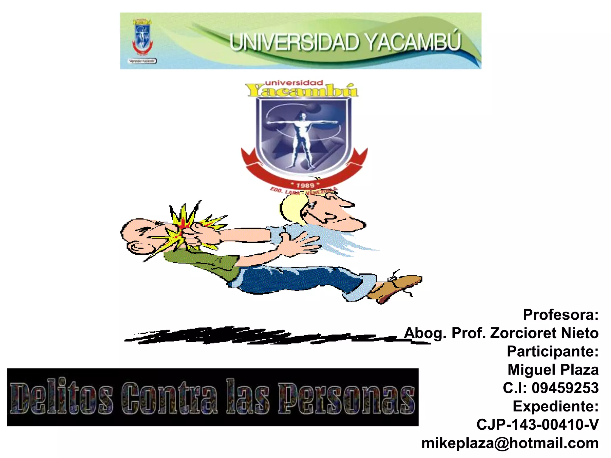 Este documento describe el delito de lesiones personales intencionales según el Código Penal de Venezuela. Explica que las lesiones se clasifican como intencionales, preterintencionales, ultraintencionales o culposas dependiendo del elemento subjetivo. También detalla las diferentes categorías de lesiones según su gravedad como gravísimas, graves, menos graves, leves y levísimas, así como los ejemplos y penas asociadas a cada una.