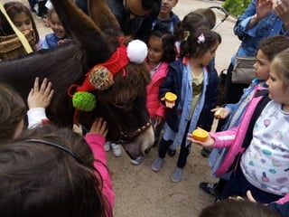 Los estudiantes celebraron el Día del Libro dedicado a la obra "Platero y yo" de Juan Ramón Jiménez. Esperaron en el parque a un pariente de Platero, un perro pequeño y peludo, al que obsequiaron con un desayuno. Más tarde, dibujaron al perro para recordar este día especial en el que crearon recuerdos bonitos y coloridos.