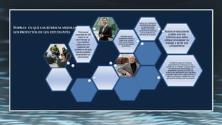 Una rúbrica es una lista de criterios específicos que permiten evaluar el aprendizaje y competencias de un estudiante en un trabajo o materia. Se utilizan rúbricas para evaluar de forma menos subjetiva, consistente y fiable, especificando claramente qué espera el docente y los criterios de calificación. Existen rúbricas holísticas que evalúan el trabajo completo, y analíticas que evalúan cada parte por separado y luego suman la puntuación total.