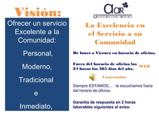 El documento presenta los servicios y objetivos de una administración de comunidades de vecinos. Ofrece atención personalizada, gestión eficiente, asesoramiento jurídico y económico, y ahorro a través de la concurrencia de presupuestos. Sus cinco pilares son la transparencia, atención personal, gestión, asesoramiento y ahorro. El objetivo es cuidar los servicios comunes, reducir cuotas y crear valor para los propietarios mediante la convivencia ordenada.