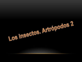 Los saltamontes son el grupo más diverso y abundante de artrópodos. Tienen tres regiones principales: cabeza con antenas y ojos grandes, tórax con tres pares de patas y dos pares de alas, y abdomen segmentado sin apéndices. Son herbívoros que trituran hierba con sus piezas bucales. Los insectos pasan por etapas de huevo, larva, pupa y adulto, y se alimentan de formas como depredadores, carroñeros, parásitos o del jugo de plantas.