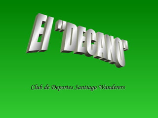 El Club de Deportes Santiago Wanderers es una institución deportiva chilena ubicada en Valparaíso. Fundado en 1892, es el equipo de fútbol profesional chileno más antiguo. Obtuvo su primer título en 1958 y su segundo en 1969, con José Pérez como entrenador y figuras como Juan Olivares, Mario Griguol y Vicente Cantatore. Es conocido como el "Decano" del fútbol chileno y fue declarado Patrimonio Intangible de Valparaíso en 2007.