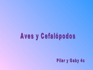 Las aves se caracterizan por tener plumas, respirar por pulmones y tener alas para volar, aunque algunas como los pingüinos no vuelan. Los cefalópodos como los calamares no tienen concha externa, usan tinta para huir de los depredadores, tienen tentáculos en la cabeza y respiran por branquias en el mar.