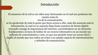 El documento analiza el video 'El amanecer de la red', el cual ilustra el impacto de la comunicación digital y la importancia del internet en el acceso a información y entretenimiento. Explica cómo funcionan las redes y los procesos detrás del envío y recepción de datos, incluyendo el papel de elementos como IP, LAN, routers y firewalls. Al final, plantea una reflexión sobre si el regreso de los paquetes de datos representa un final feliz para el usuario.