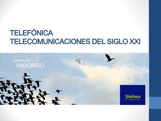 El documento describe la visión y estrategia de Telefónica, una de las mayores compañías de telecomunicaciones a nivel mundial. Telefónica busca satisfacer las necesidades de sus clientes ofreciendo servicios integrados de telefonía fija, móvil, internet y televisión. La compañía también se enfoca en proporcionar valor a sus empleados, accionistas y la sociedad. Telefónica tiene presencia en Europa y América Latina, donde es líder, y busca adaptarse a las nuevas tendencias tecnológicas para