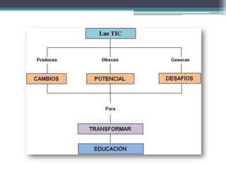 El documento aborda la importancia de las tecnologías de la información y la comunicación (TIC) en la comprensión del mundo actual y su papel en el procesamiento, almacenamiento y transmisión de información. Destaca que una cultura informática mínima es esencial para no quedar al margen de las corrientes culturales, y sugiere que el aprendizaje puede facilitarse mediante las TIC, especialmente a través de Internet. También menciona los desafíos en la enseñanza de estas tecnologías y la necesidad de desarrollar métodos educativos constructivos que integren diferentes aspectos de la informática.