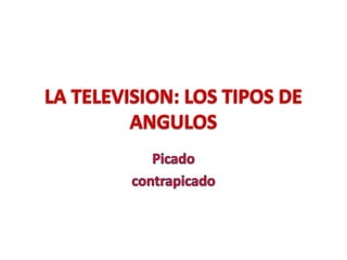 La televisión utiliza diferentes tipos de planos, ángulos y encuadres para capturar la acción y conceptos de una escena. Estos incluyen planos picados, contrapicados, el campo de acción y diferentes encuadres para capturar la escena desde diferentes perspectivas.