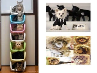 El documento habla sobre los cuidados básicos de las mascotas. Explica que la veterinaria se encarga de prevenir y tratar enfermedades de animales domésticos. Luego, detalla algunas recomendaciones para el cuidado de perros y gatos, como la frecuencia de alimentación y mantener agua y arena disponibles. Finalmente, menciona accesorios para la comodidad de las mascotas.