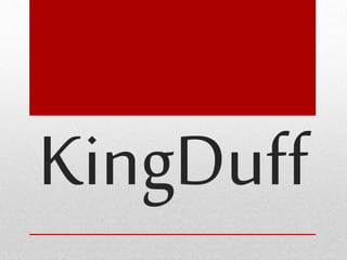 El documento habla sobre el origen del nombre de la cerveza Duff en Los Simpson. Según Duff McKagan de Guns N' Roses, le dio permiso a los creadores de la serie para usar su apodo para una marca ficticia de cerveza. Más tarde se sorprendió al ver que Los Simpson se había convertido en un éxito y que productos de Duff estaban en todas partes. El documento también describe las instalaciones de KingDuff, llamadas "Moe's", que ofrecen cerveza Duff y entretenimiento a los clientes. KingDuff provee una variedad